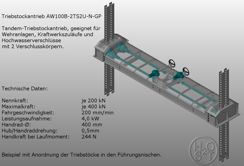 Triebstockantriebe können als Einzel- oder Zwillingshubwerke ausgeführt werden.